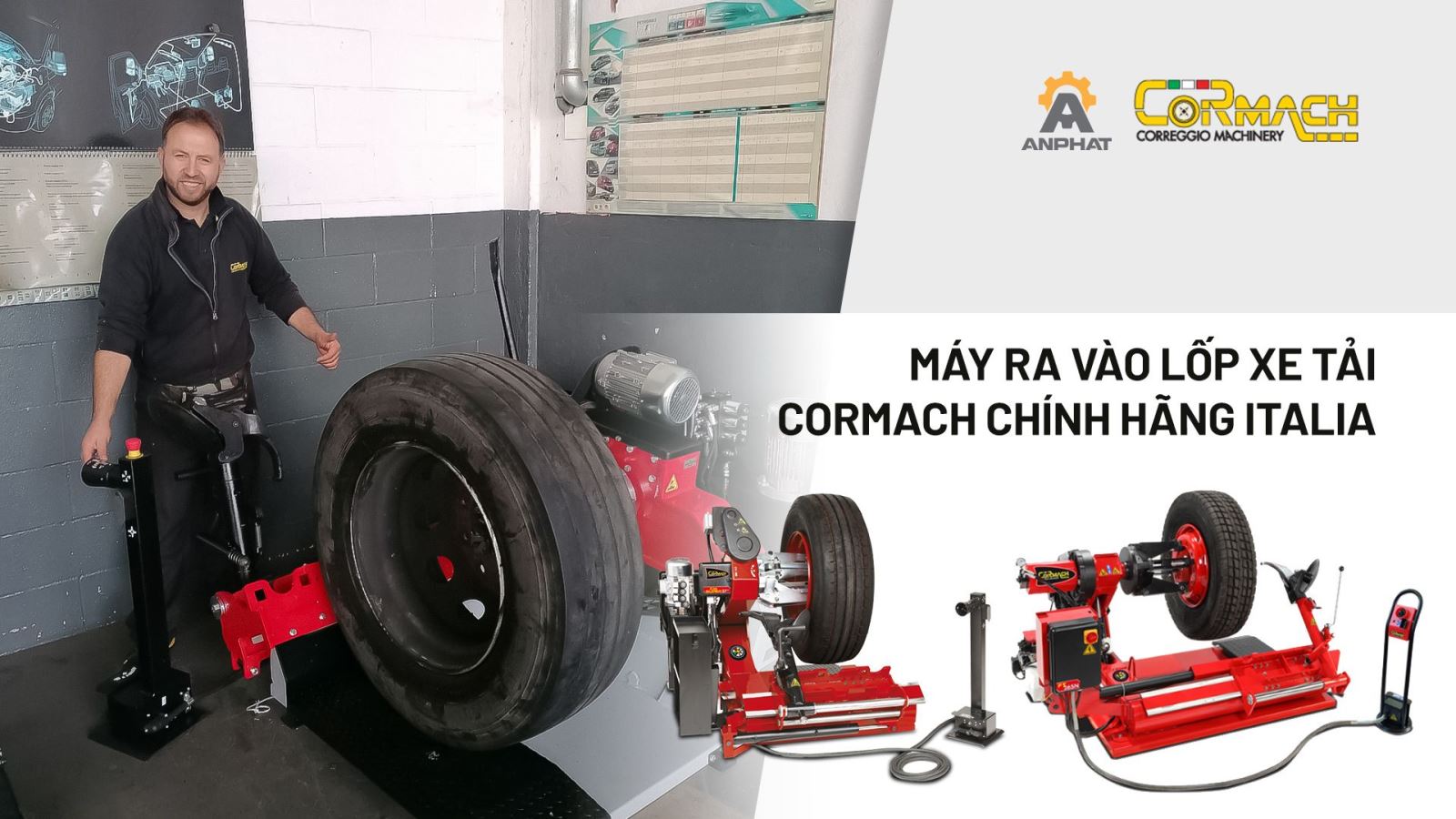 Cormach là thương hiệu thiết bị sửa chữa ô tô nổi tiếng đến từ Ý, được thành lập năm 1989 tại Correggio. Với hơn 30 năm phát triển, Cormach đã trở thành một trong những nhà sản xuất uy tín trong lĩnh vực thiết bị làm lốp và thiết bị gara ô tô tại châu Âu.