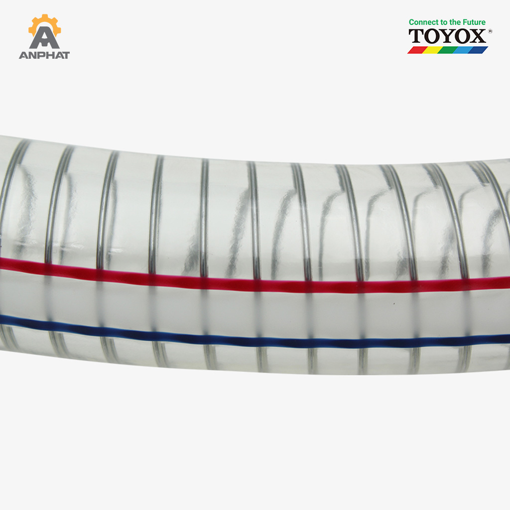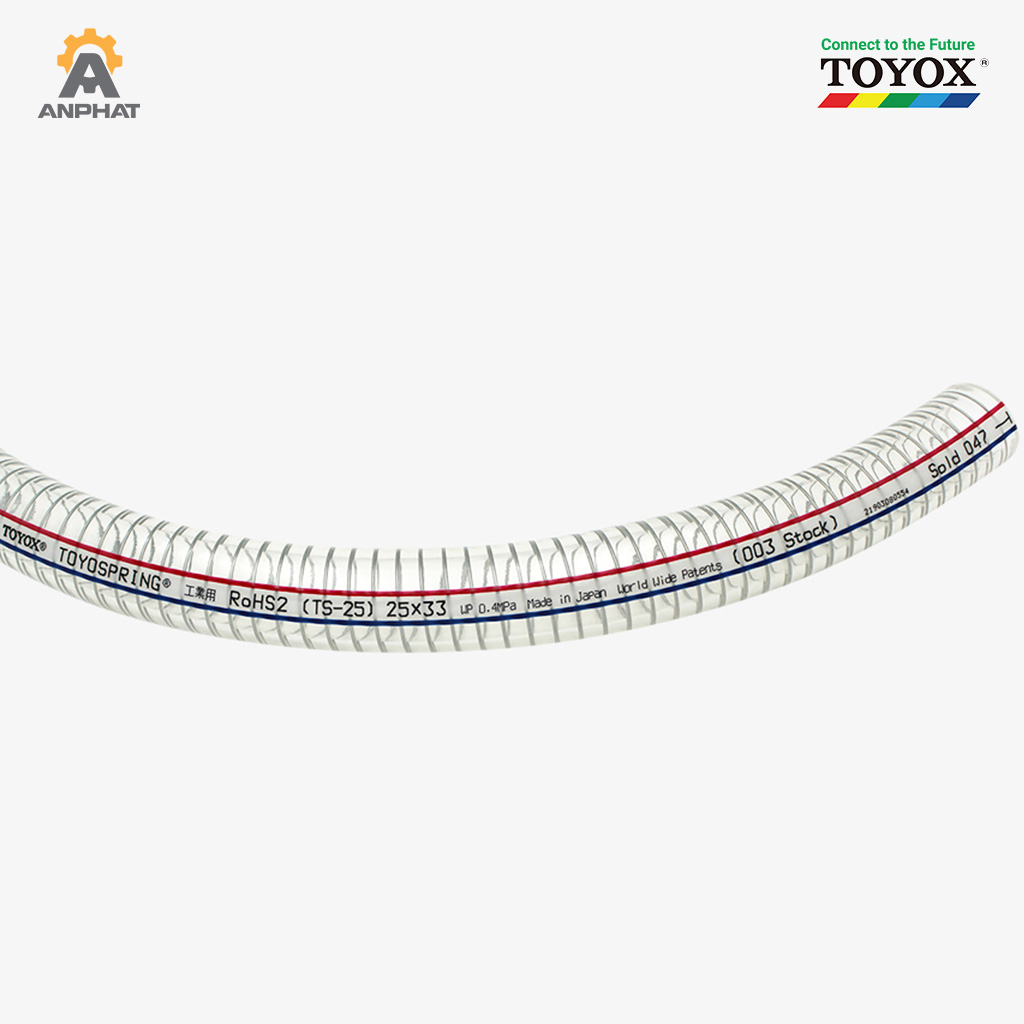 Ống dẫn Toyox TS (Toyospring Hose) là dòng ống dẫn công nghiệp đa năng được sử dụng trong nhiều nhà máy sản xuất nhờ khả năng chống gập, chống xẹp và truyền dẫn ổn định nhiều loại chất dẫn. Với cấu tạo PVC mềm kết hợp sợi thép gia cường, Toyox TS mang lại độ bền cao, khả năng chịu áp lực tốt và phù hợp để sử dụng trong trường hợp áp suất âm.