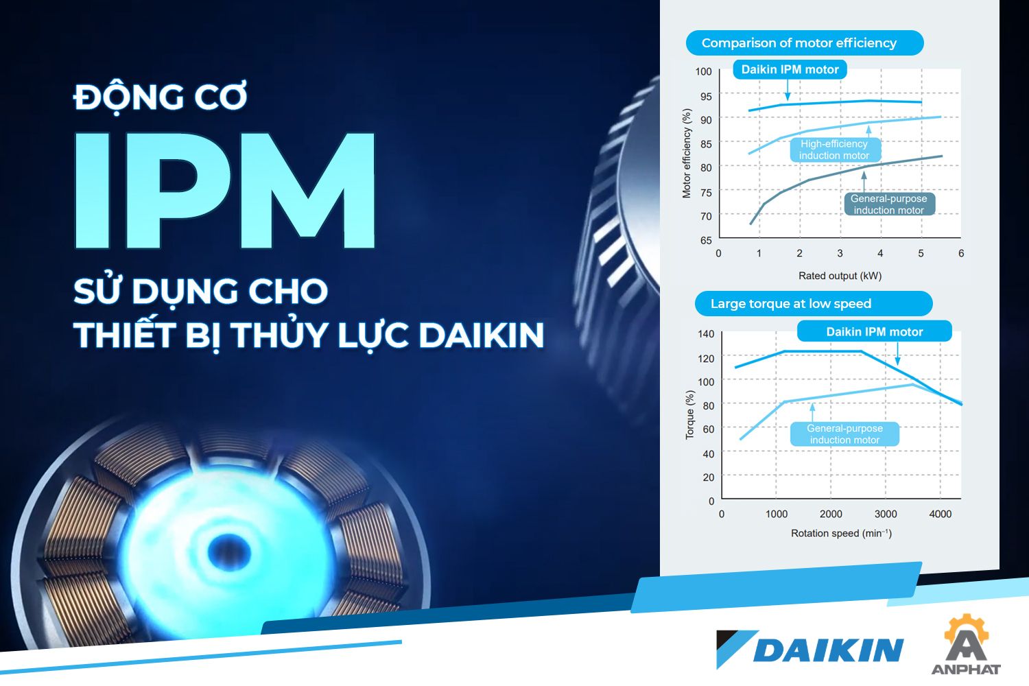 Để giải quyết bài toán này, Daikin đã phát triển công nghệ động cơ IPM (Interior Permanent Magnet) - một giải pháp động cơ hiệu suất cao được tích hợp trong các bộ nguồn thủy lực inverter của hãng. Công nghệ này có thể tiết kiệm trên 50% điện năng so với hệ thống thủy lực truyền thống.