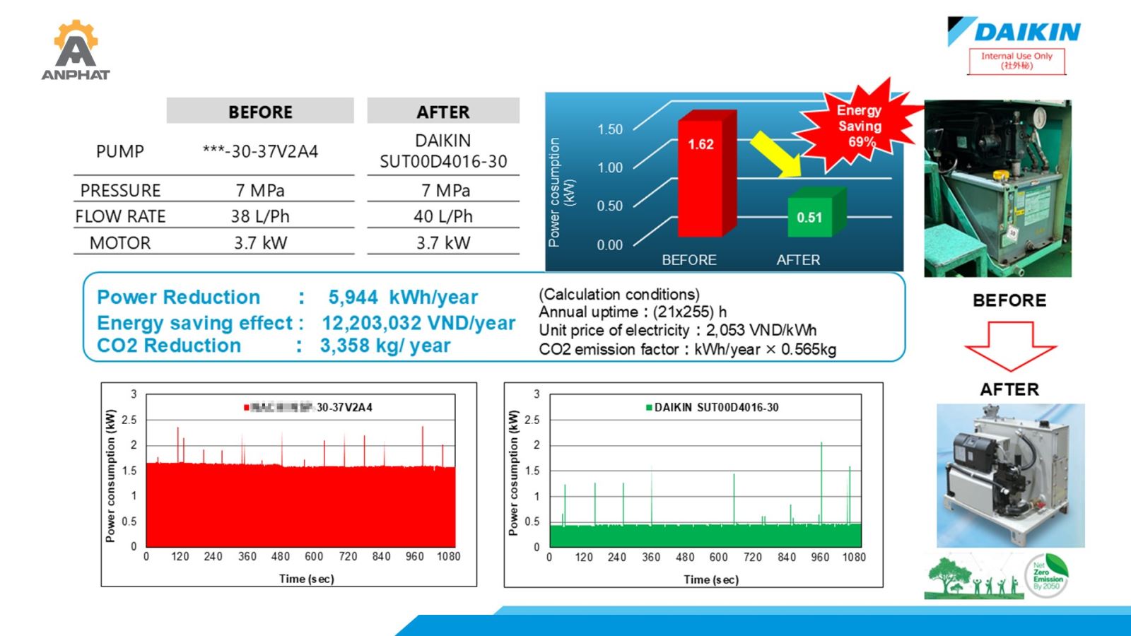Case study về hiệu quả tiết kiệm năng của bộ nguồn thủy lực Daikin lắp trên máy CNC