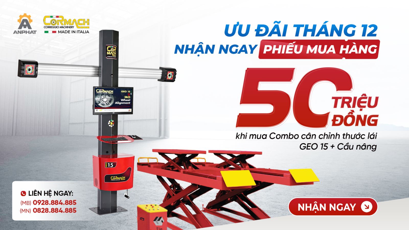 - Tặng PHIẾU MUA HÀNG trị giá 50,000,000đ khi mua Combo máy Cân chỉnh thước lái Cormach GEO-15 và cầu nâng STANDARD 5,5 tấn.
