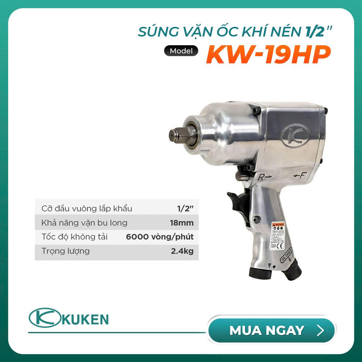 KW-19HP là súng vặn ốc khí nén 1/2 inch, dòng súng nhỏ gọn nhưng không kém phần mạnh mẽ. KW-19HP chuyên sử dụng để vặn siết các loại ốc 18mm, sử dụng trong sửa chữa lốp xe con, xe du lịch, xe máy,...
