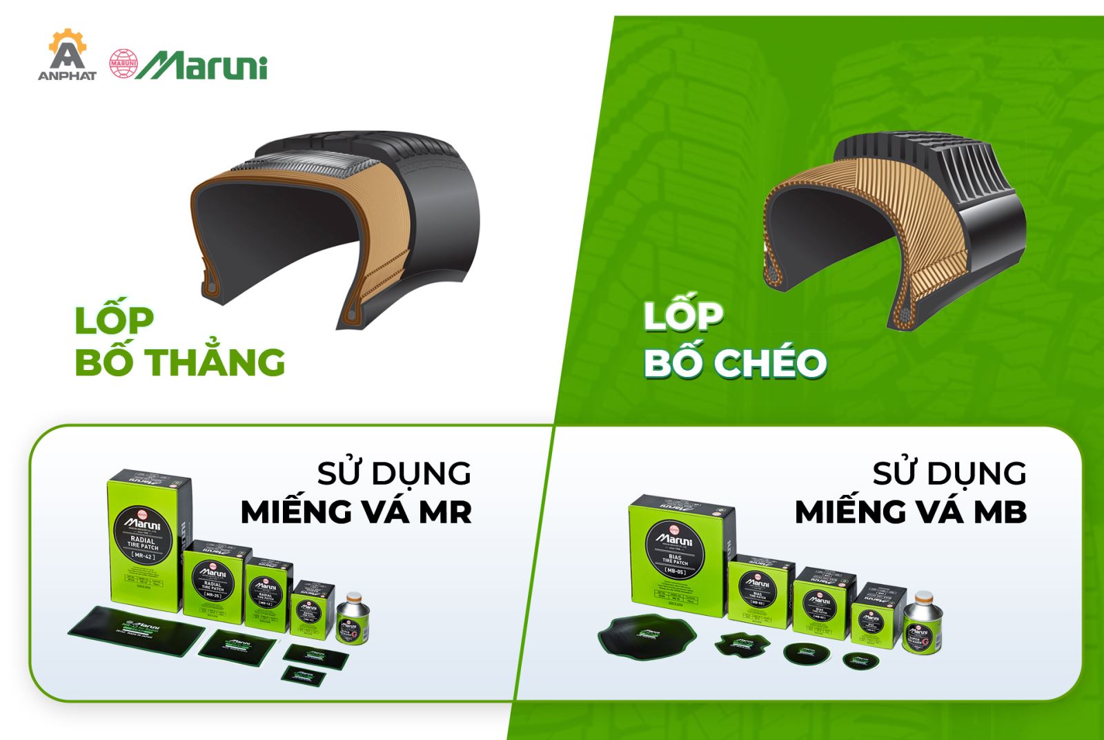 An Phát tự hào là nhà phân phối chính thức sản phẩm Maruni tại Việt Nam suốt gần 30 năm, mang đến giải pháp vá lốp chất lượng Nhật Bản cho các gara, xưởng sửa chữa lốp trên toàn quốc. Quý khách có nhu cầu sử dụng vật tư vá lốp Maruni, vui lòng để lại thông tin TẠI ĐÂY để được đội ngũ An Phát tư vấn chi tiết và báo giá nhanh chóng.